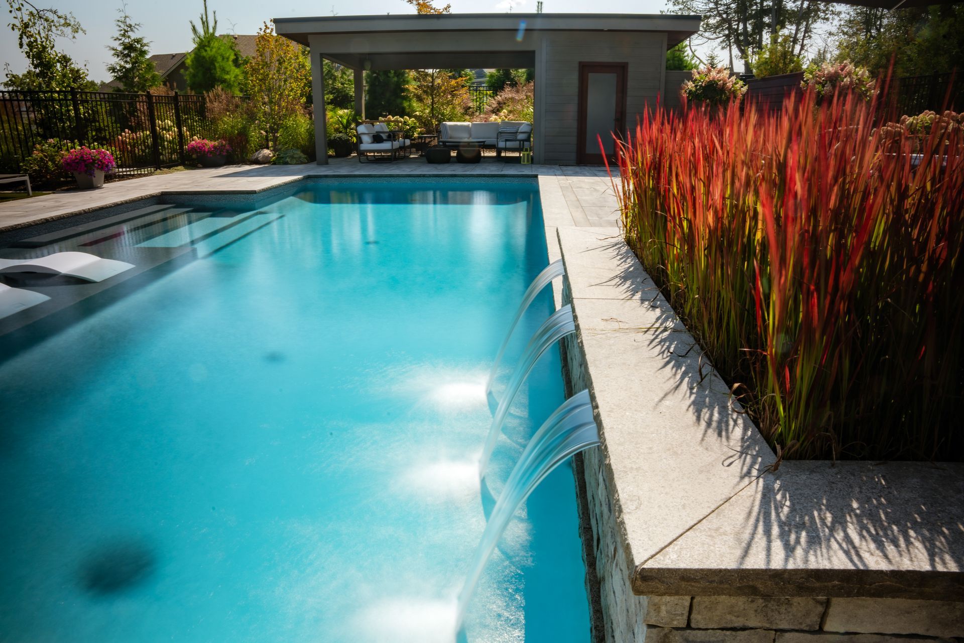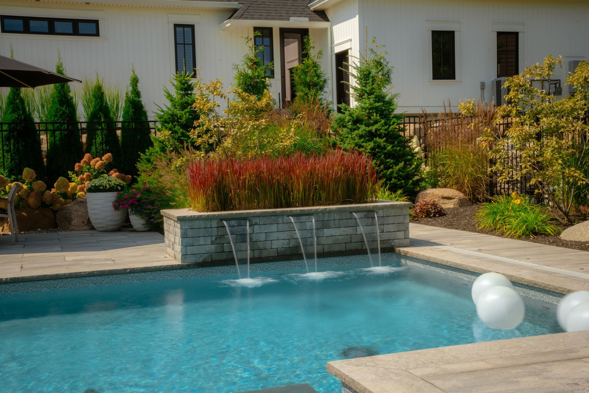 pool, stone Patio, Garden Beds, Synthetic Turf, Water Features, Carpentry, barrel sauna, Landscape Lighting, walkways, stone garden wall